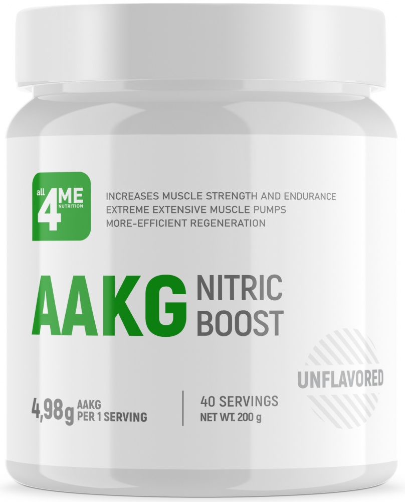 Для наилучших спортивных результатов сочетайте AAKG NITRIC BOOST с другими добавками ALL4ME NUTRITION: креатином, бета-аланином, гуараной, BCAA.