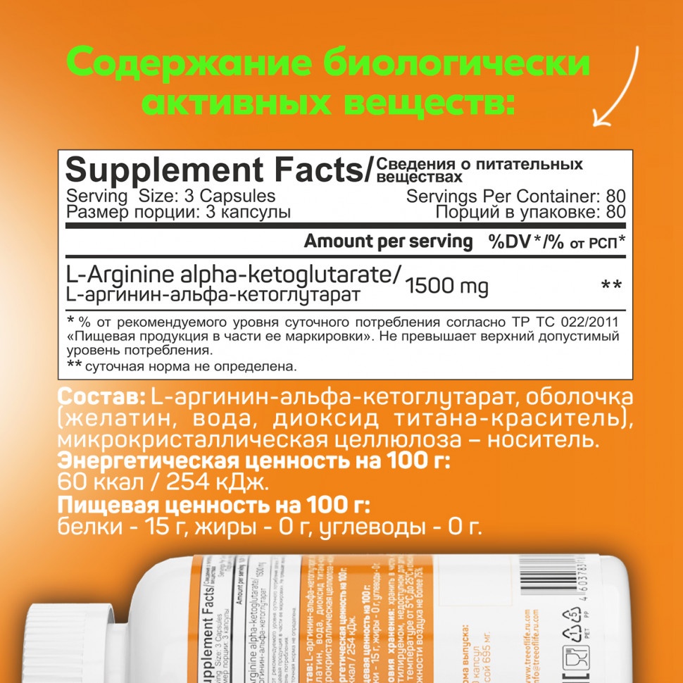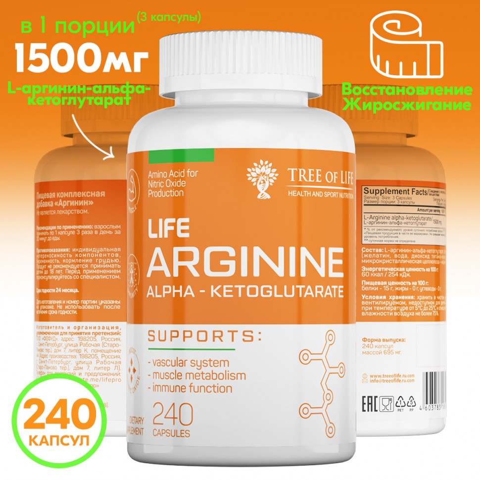 Интернет-магазин Body-Pit.Life предлагает купить Аминокислота Life Arginine Alfa-Ketoglutarate 240 капсул в Барнауле.
