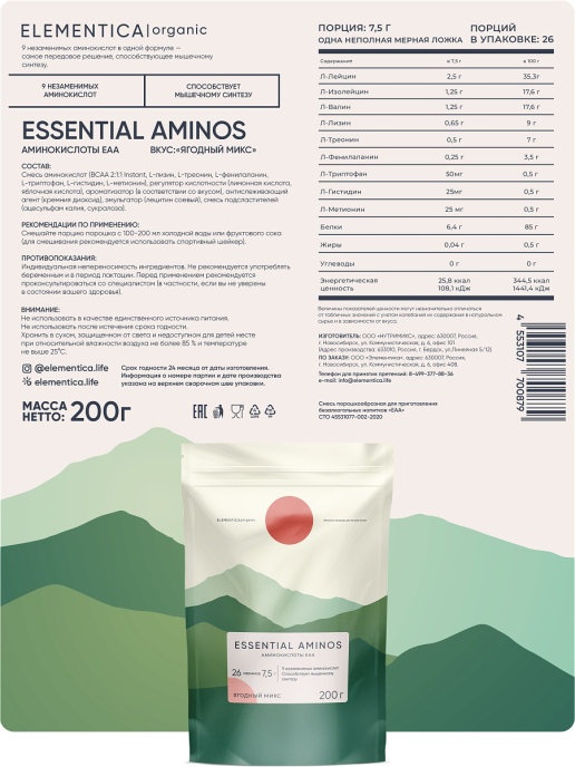 Интернет-магазин Body-Pit.Life предлагает купить Аминокислота ELEMENTICA ЕАА 200 гр в Барнауле.