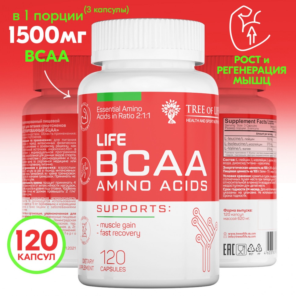 Аминокислотный комплекс Tree of Life BCAA создан для ускорения восстановления мышц вовремя и после тренировки, а также для ускорения роста мышечной массы и похудения.