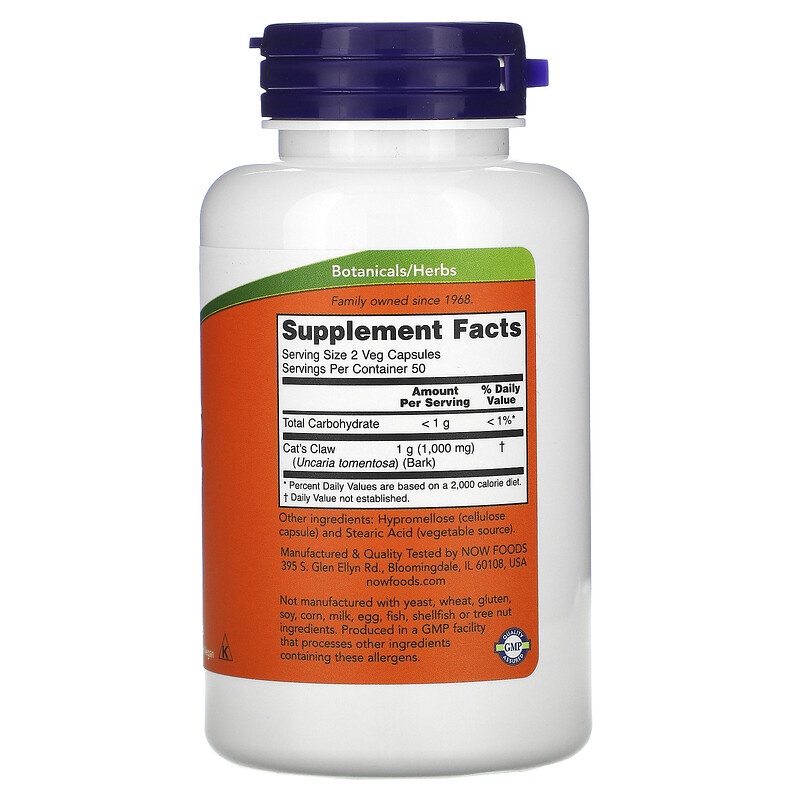 Антиаксидант NOW Cat's Claw 500 мг 100 капсул