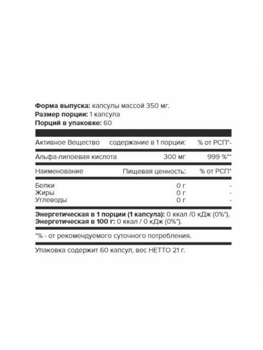 Альфа-липоевая кислота способствует замедлению процессов старения, выведению солей тяжелых металлов из организма, регулированию уровня сахара в крови, обладает антиоксидантным действием, участвует в образовании энергии, тем самым позволяя заниматься спортом более интенсивно.