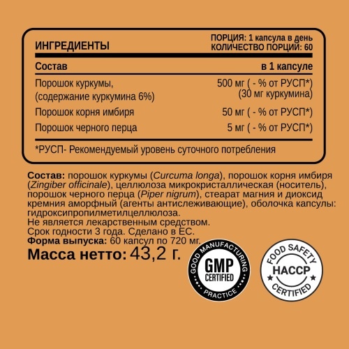 | Экстракт куркумы: | 500 мг |