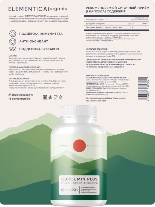 Интернет-магазин Body-Pit.Life предлагает купить Антиоксидант ELEMENTICA Curcumin Plus 400 мг 60 капсул в Барнауле.