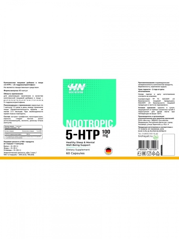 Интернет-магазин Body-Pit.Life предлагает купить Антиоксидант Hayat Nutrition 5-HTP 100 мг 60 капсул в Барнауле.