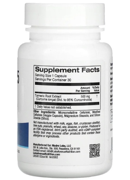 Антиоксидант Lake Avenue Nutrition Curcumin 95 30 капсул