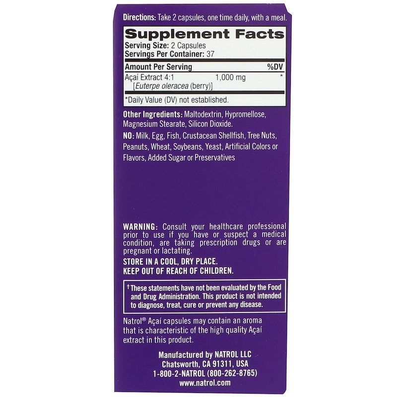 Антиоксидант Natrol AcaiBerry 1000 мг 75 капсул