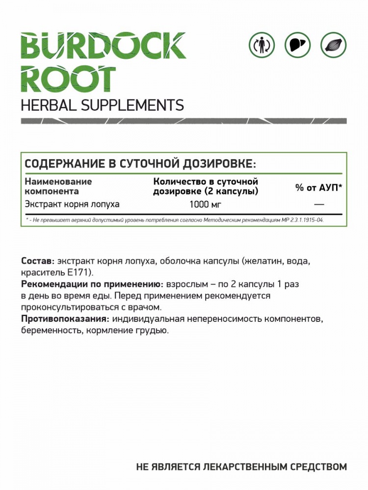 Экстракт корня лопуха: 1000 мг