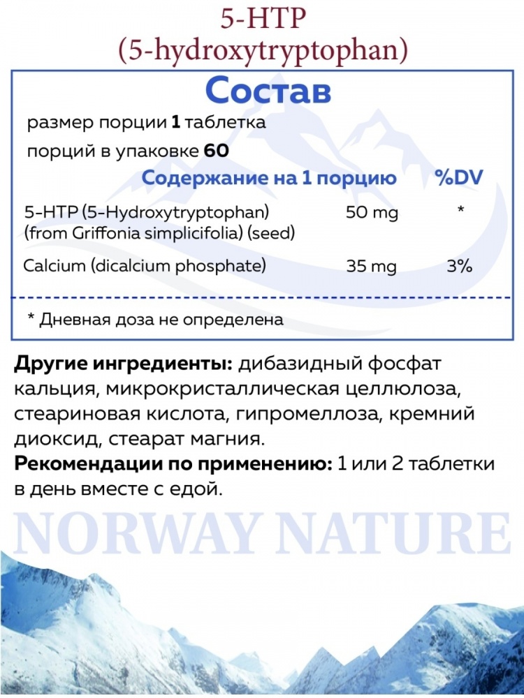 Интернет-магазин Body-Pit.Life предлагает купить Антиоксидант Norway Nature 5-HTP 50 мг 60 таблеток в Барнауле.