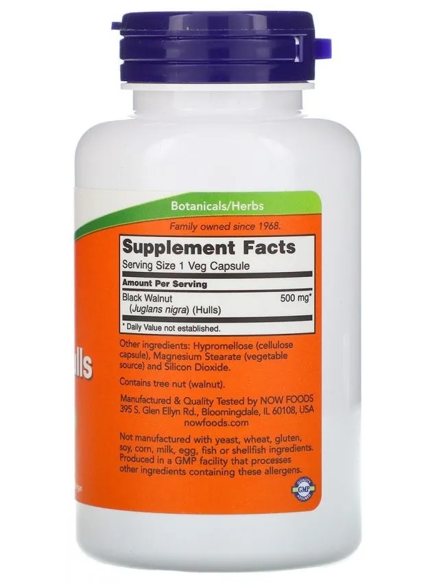 Антиоксидант NOW Black Walnut Hulls 500 мг 100 капсул