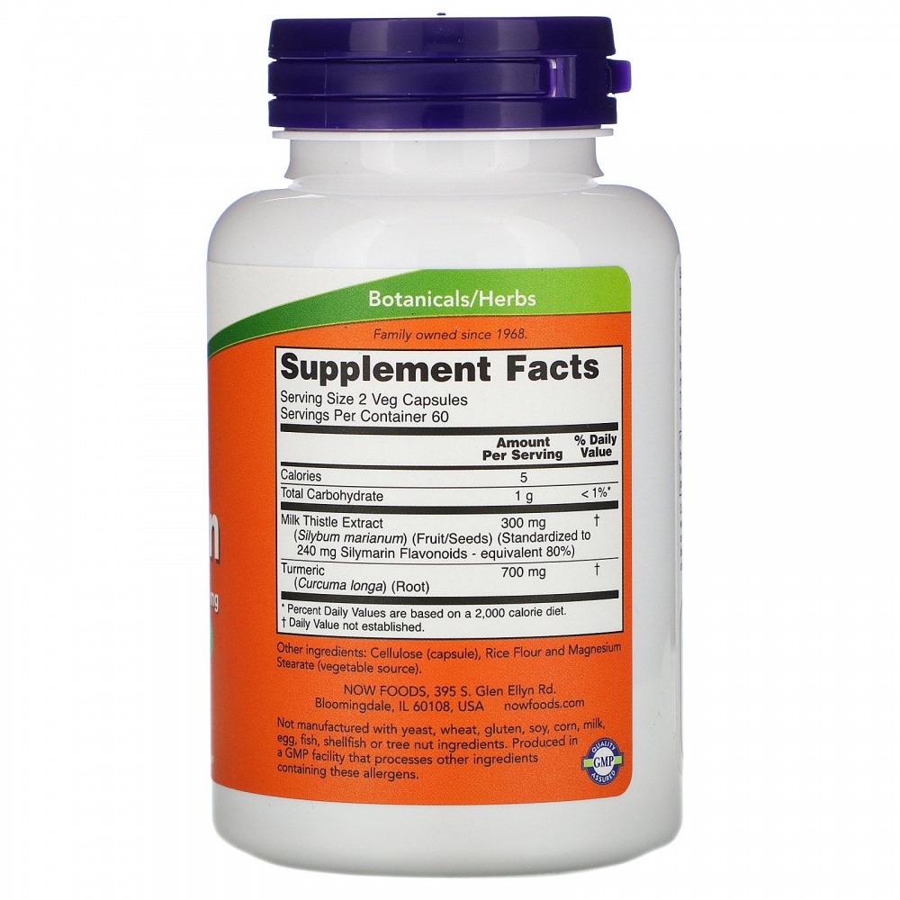 Силимарин (Silybum marianum), также известный как расторопша, использовался травниками в течение многих веков. Научные исследования показали, что компоненты силимарина способствуют нормальной работе печени. Этот вегетарианский состав также содержит куркуму в качестве дополнительного действующего компонента.