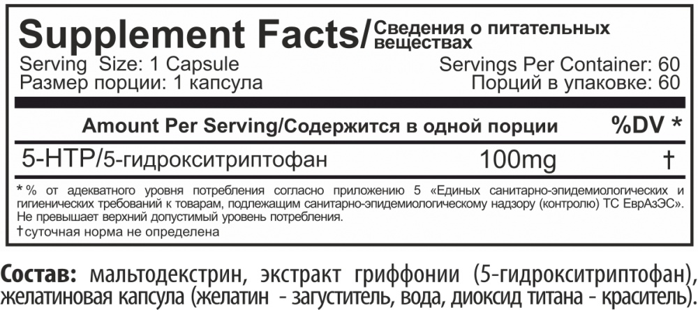 5-HTP/5-гидроокситриптофан: 100мг