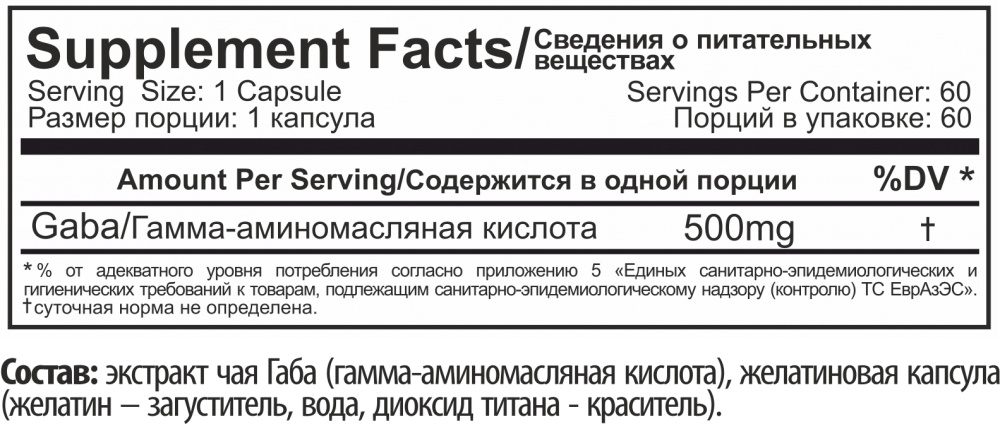 Gaba/Гамма аминомасляная кислота: 500мг