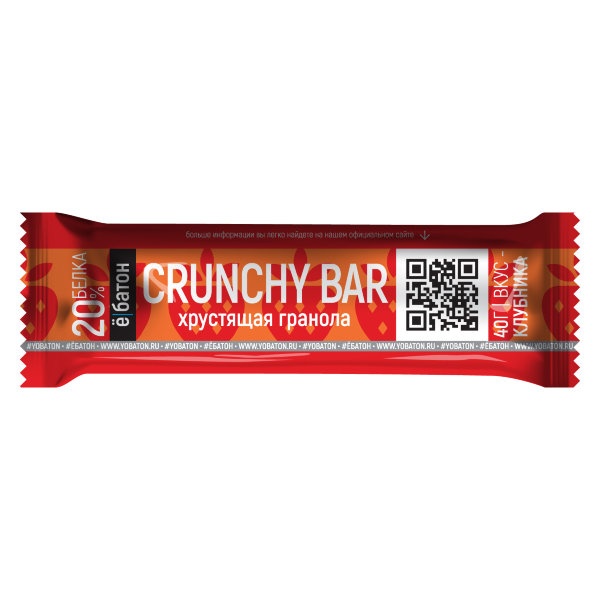 Протеиновые батончики ё/батон CRUNCHY BAR - бесподобный натуральный продукт, который непременно доставит вам удовольствие! Многослойные протеиновые батончики CRUNCHY BAR от ё/батон изготавливаются особым способом, в отличие от многих других протеиновых батончиков, ё/батон CRUNCHY BAR готовятся в несколько этапов, нижний протеиновый слой покрывается слоем гранолы, приготовленной в печи из смеси злаков, а в последствии покрывается глазурью, чтобы сохранить хрустящую начинку. Каждый батончик содержит углеводы, необходимые для восстановления сил и энергии человеческому организму. Поэтому батончик рекомендуется для спортсменов или людей, которым нужна удобная закуска на бегу. С батончиками ё/батон CRUNCHY BAR перекус превращается в море удовольствия. Ведь они не только очень вкусные и мягкие, но и содержат порцию ценнейшего белка для роста и восстановления мышц, а также пищевые волокна, которые и для пищеварения полезны, и насыщение на долгое время дает. Так что, перекусив подобным батончиком, вы долго не будете хотеть есть и сможете без приступов голода «дожить» до следующего основного приема пищи.