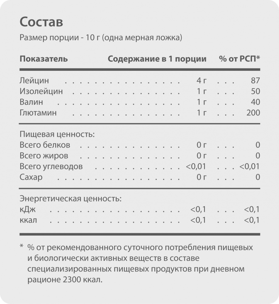 Помимо трех обязательных компонентов (лейцин, изолейцин и валин), состав комплекса ВСАА усилен глутамином и входят: гидрокарбонат натрия, регуляторы кислотности яблочная и лимонная кислоты, крахмал, ароматизаторы натуральные или идентичные натуральным, сукралоза и изомальт. Оптимальная дозировка каждого активного компонента, уже в скором времени, позволит качественно улучшить показатели выносливости и уровня физической силы.