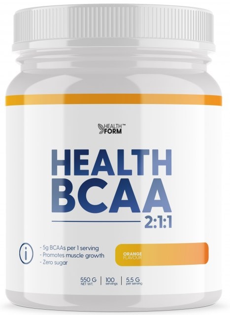 HEALTH BCAA от HEALTH FORM - это универсальная добавка для любого вида физической активности, источник незаменимых аминокислот BCAA в соотношении 2-1-1, в виде порошка для приготовления напитка.