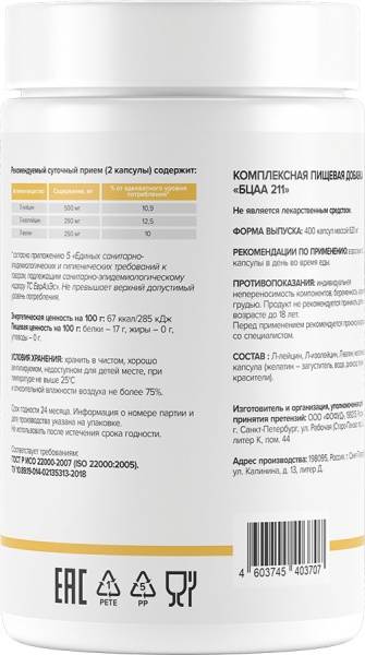 Интернет-магазин Body-Pit.Life предлагает купить БЦАА Optimum System BCAA 1000 400 капсул в Барнауле.