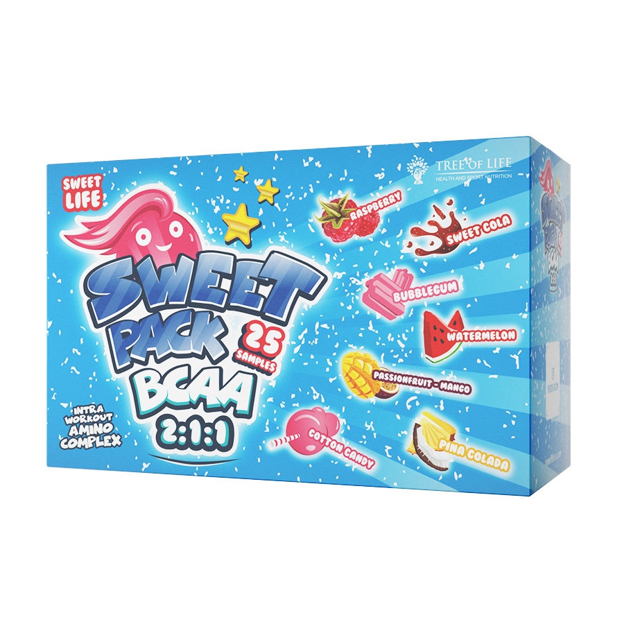 Sweet BCAA является комплексным продуктом с оптимальным соотношением аминокислот BCAA 2-1-1. Таким образом это Intra Workout комплекс (который принимается во время тренировки), являясь источником энергии, ускоряющий восстановление и покрывающий потребность в большом количестве различных аминокислот. Продукт представлен в форме порошка, который отлично размешивается в воде. Добавка имеет множество ярких вкусов на основе натуральных ароматизаторов. В качестве подсластителей используются сукралоза и стевия.