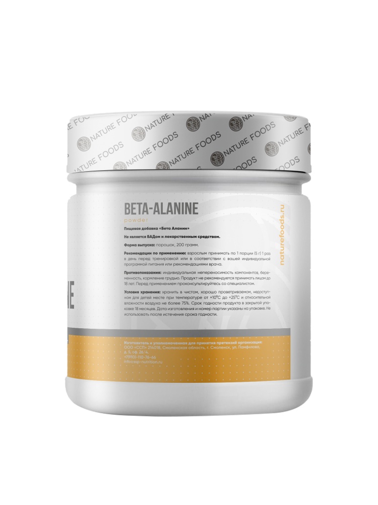 Интернет-магазин Body-Pit.Life предлагает купить Аминокислота Nature Foods Beta Alanine 200 гр в Барнауле.