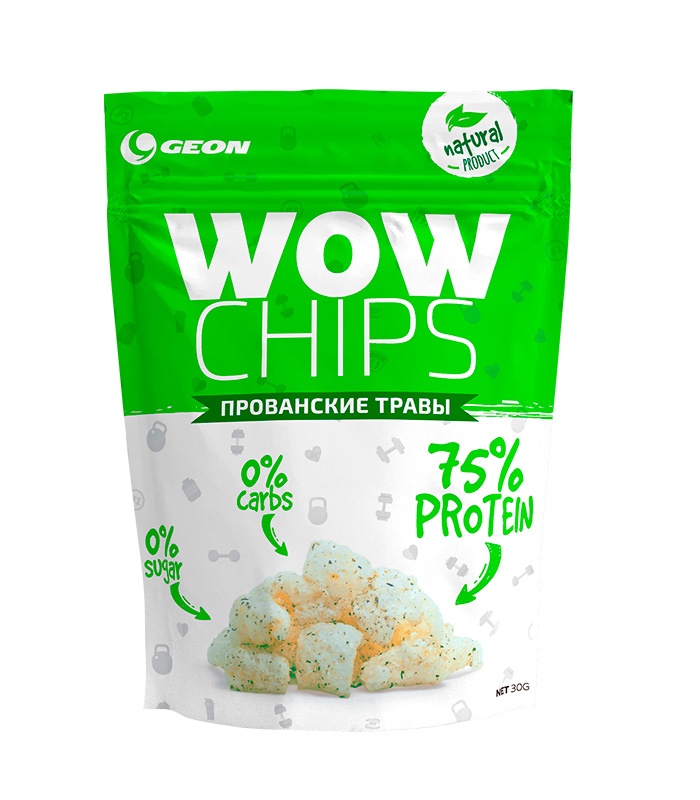 WOW Chips от G.E.O.N — легкий снек для перекуса, с высоким содержанием белка и низким содержанием углеводов. Может употребляться при диете и поддерживает спортивную форму и здоровье.