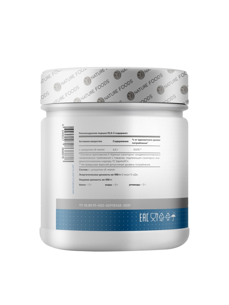 Интернет-магазин Body-Pit.Life предлагает купить Аминокислота Nature Foods Citrulline Malate 200 гр в Барнауле.
