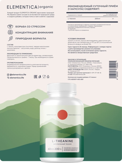 Интернет-магазин Body-Pit.Life предлагает купить Аминокислота ELEMENTICA L-Theanine 60 капсул в Барнауле.