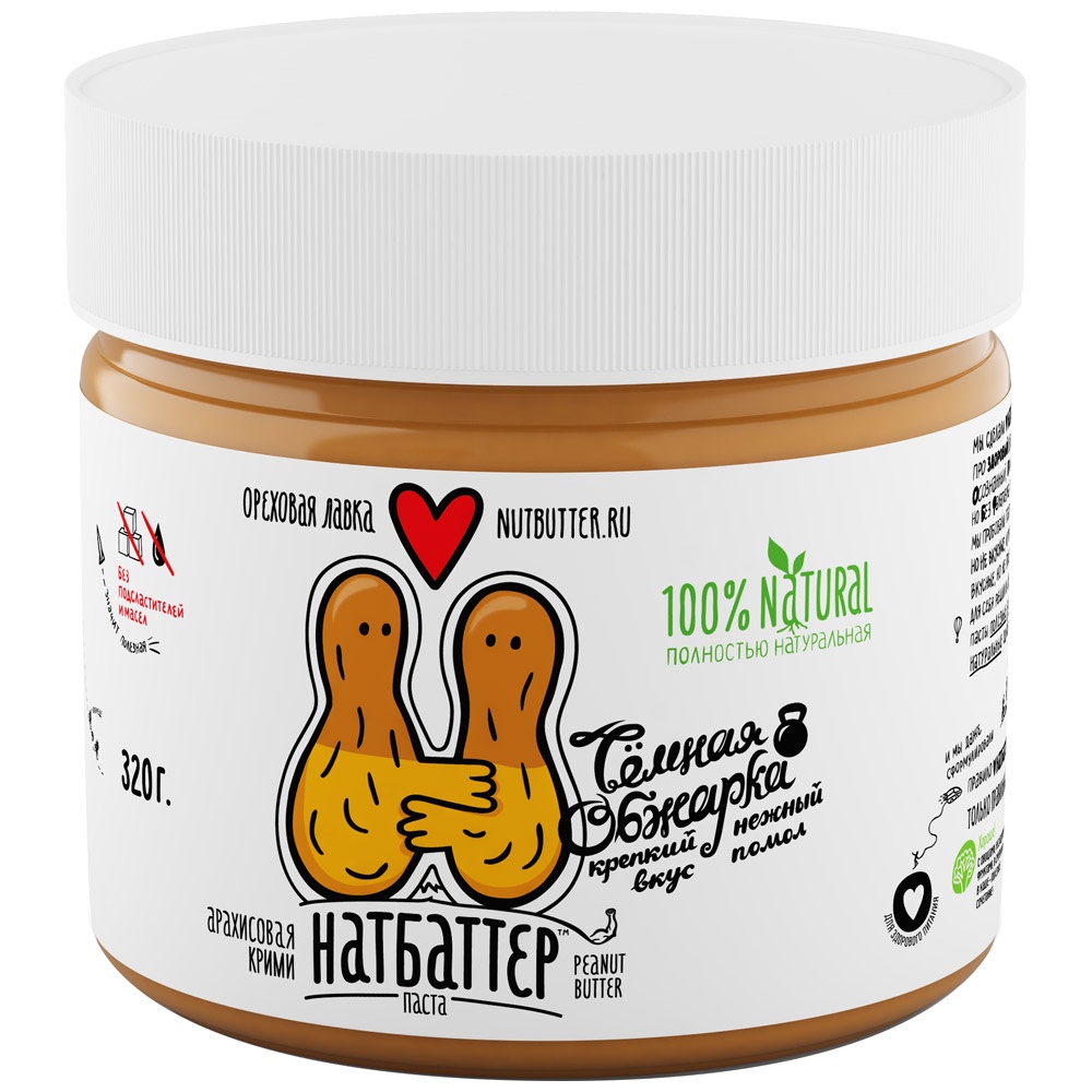 Темной обжарки - кремовая, более текучая паста из сильнее прожаренных орехов. Паста с приятным глубоким арахисовым вкусом.