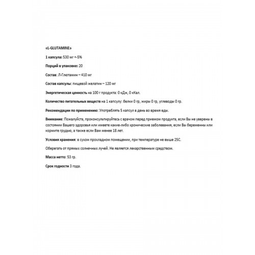 Глутамин (глютамин) незаменимая аминокислота, содержащаяся в белке. Основным преимуществом данной добавки является поддержка иммунной системы при высокоинтенсивных физических нагрузках. Важным свойством аминокислоты является восстановление мышечной ткани.