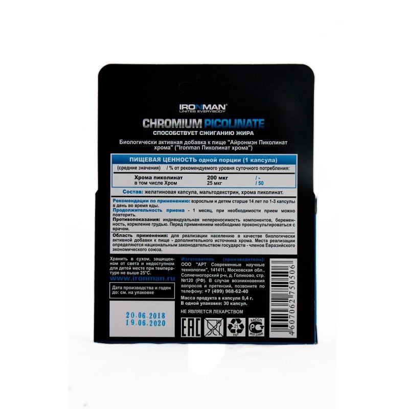 Интернет-магазин Body-Pit.Life предлагает купить Витамины IRONMAN Picolinate chromium 30 капсул в Барнауле.