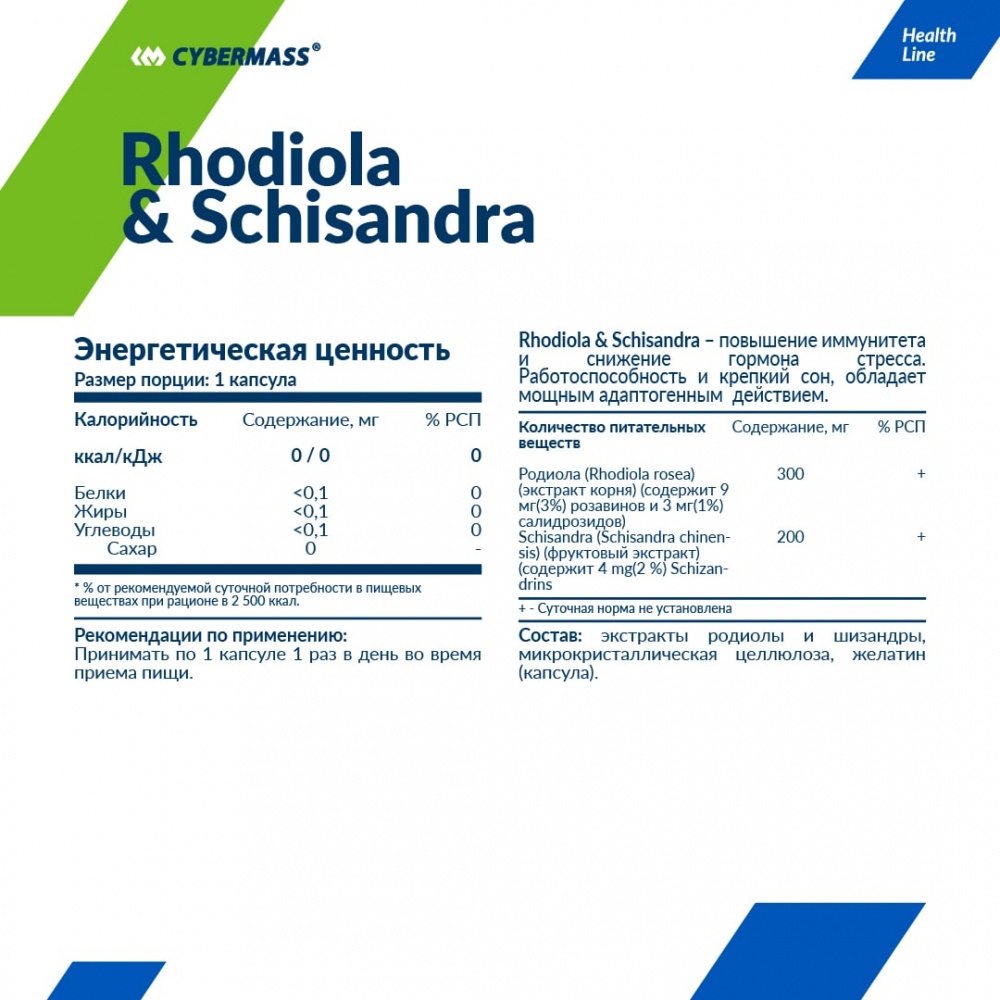 Витамины CyberMass Rhodiola Rosea + Schisandra 60 капсул