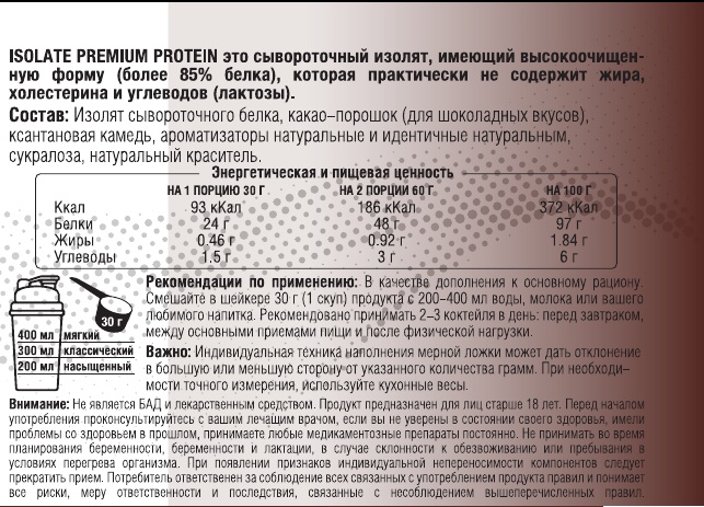 Рекомендации по применению: смешайте 1 порцию (1 мерная ложка, 30 г) с 200–400 мл питьевой воды.