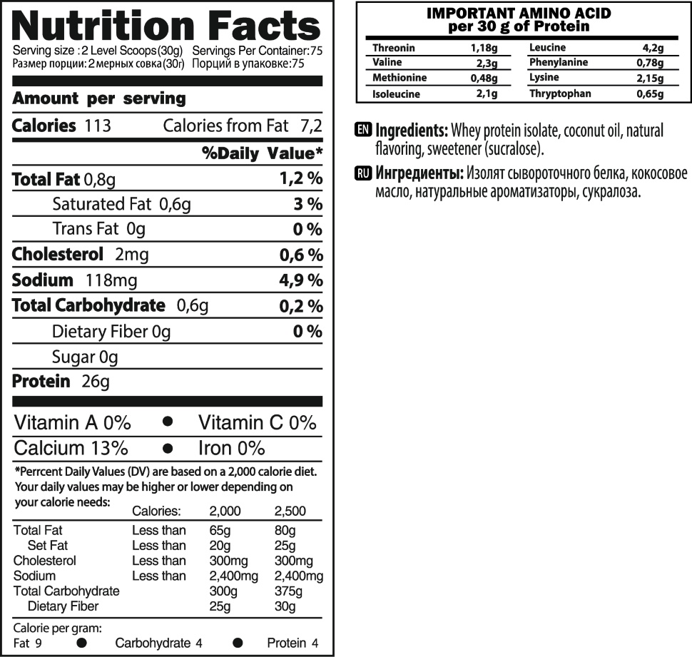 изолят сывороточного протеина, натуральные ароматизаторы, кокосовое масло, сукралоза.