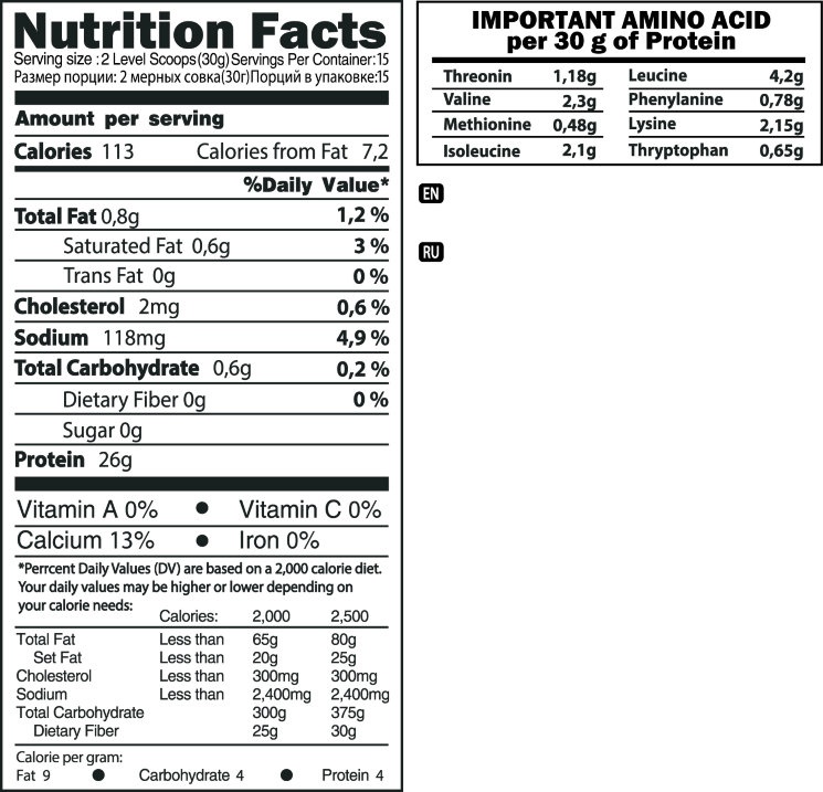 Лучшее время для приема- с утра, чтобы приостановить процесс катаболизма мышечных волокон. Отлично подходит для перекуса в течение дня, для покрытия потребности организма в белке. Смешайте 1 порцию - 2 мерных ложки ( 30г ) с 200-250 мл воды или молока в шейкере.