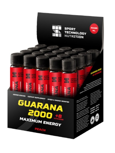 Каждая ампула Guarana 2000 (25 мл) содержит: растительный экстракт гуараны, таурин, кофеин и витамины С, В1, В3, В5, В6, В7, В9 (фолиевая кислота), В12.