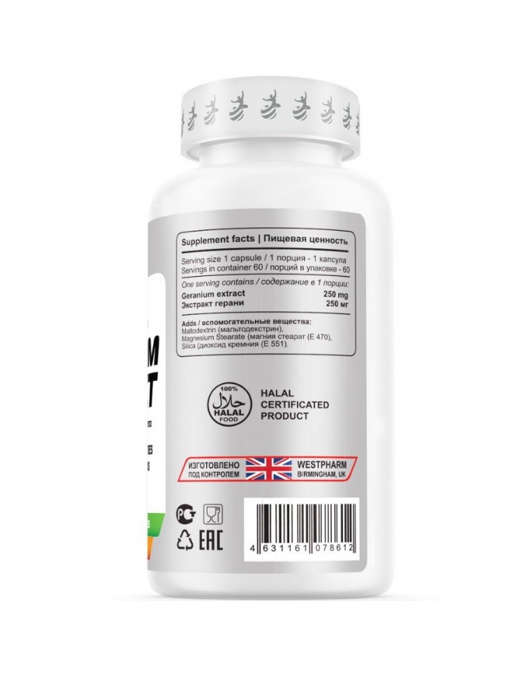 Интернет-магазин Body-Pit.Life предлагает купить Энергетик WestPharm Vegan Line Geranium Extract 250 мг 60 капсул в Барнауле.