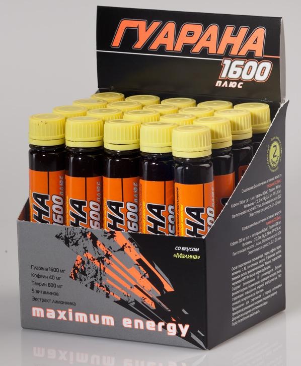 Гуарана 1600 Плюс незаменима при любых интенсивных нагрузках, как умственных, так и физических, либо при работе, требующей продолжительной повышенной концентрации внимания. Стимулирует нервную систему и существенно повышает мощность физических усилий, координацию движений, скорость реакции, концентрацию внимания. Ускоряет жировой обмен, облегчает выход кальция из клеток мышц, что усиливает мышечные сокращения. Напиток рекомендован к применению во всех видах спорта; водителям, а также лицам, чья работа требует повышенной концентрации внимания или связана с высоким нервным напряжением.