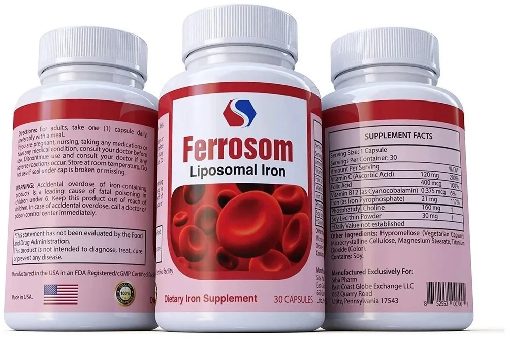 Добавка Iron Ferrosom - идеальное решение для дефицита железа! Ингредиенты премиум-класса: Эти железные капсулы содержат высококачественные тщательно отобранные ингредиенты, включая витамин С и В 12, фолиевую кислоту и липосомное железо без добавок или искусственных консервантов, будучи на 100% безопасными для всех быстрое поглощение: Липосомное железо является превосходным типом железа, который гораздо более эффективен, чем обычные добавки, обеспечивая максимальную скорость поглощения с помощью системы прямой доставки клеток, леча анемию быстрее и эффективнее. Удивительные преимущества: При регулярном использовании эта пищевая добавка для железа помогает эффективно бороться с симптомами дефицита железа, включая усталость, учащенное сердцебиение, выпадение волос, плохую концентрацию, в то же время предотвращая и облегчая выпадение волос и очищенные ногти.