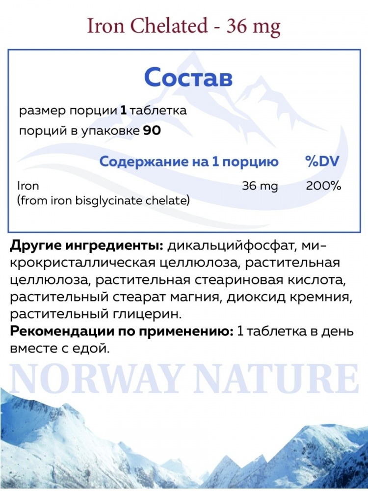 Интернет-магазин Body-Pit.Life предлагает купить Витамины Norway Nature Iron Chelated 36 мг 90 таблеток в Барнауле.
