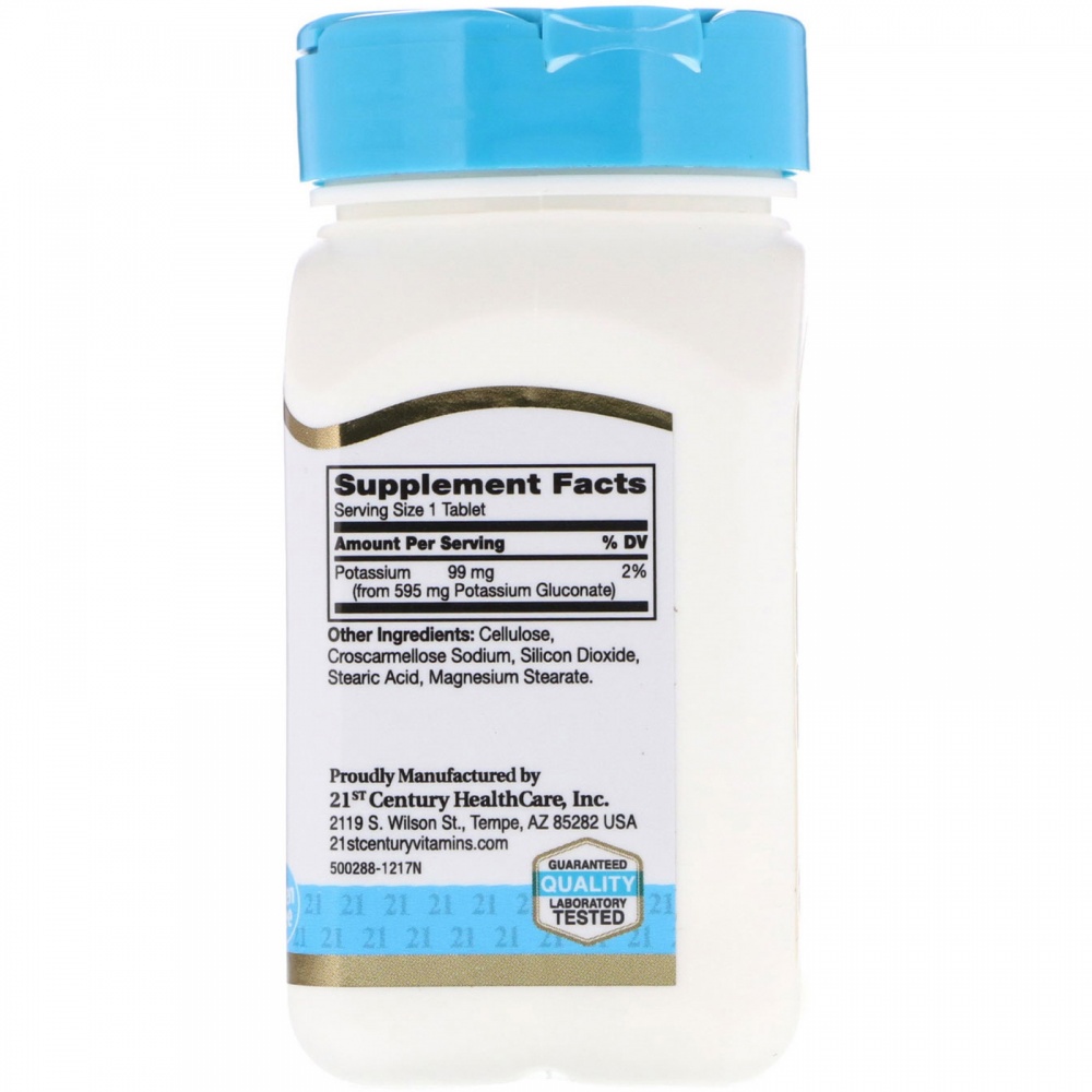 Калий от 21st Century является высоко биодоступным, он помогает регулировать водный баланс в организме. Исследования показали, что калий контролирует активность сердечной мышцы, нервной системы и почек.