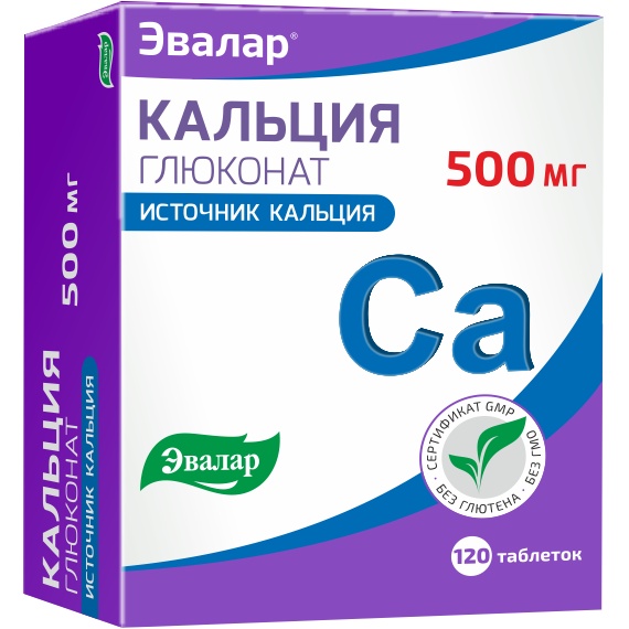 Витамины Эвалар Кальция Глюконат 500 мг 120 таблеток