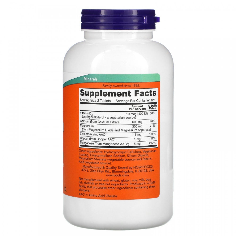 Цитрат кальция — это легко усваиваемая форма кальция, необходимого для поддержания здоровья костной системы. В состав добавки также входят витамин D, магний, цинк, медь и марганец, потому что они играют важную роль в метаболизме костной ткани.