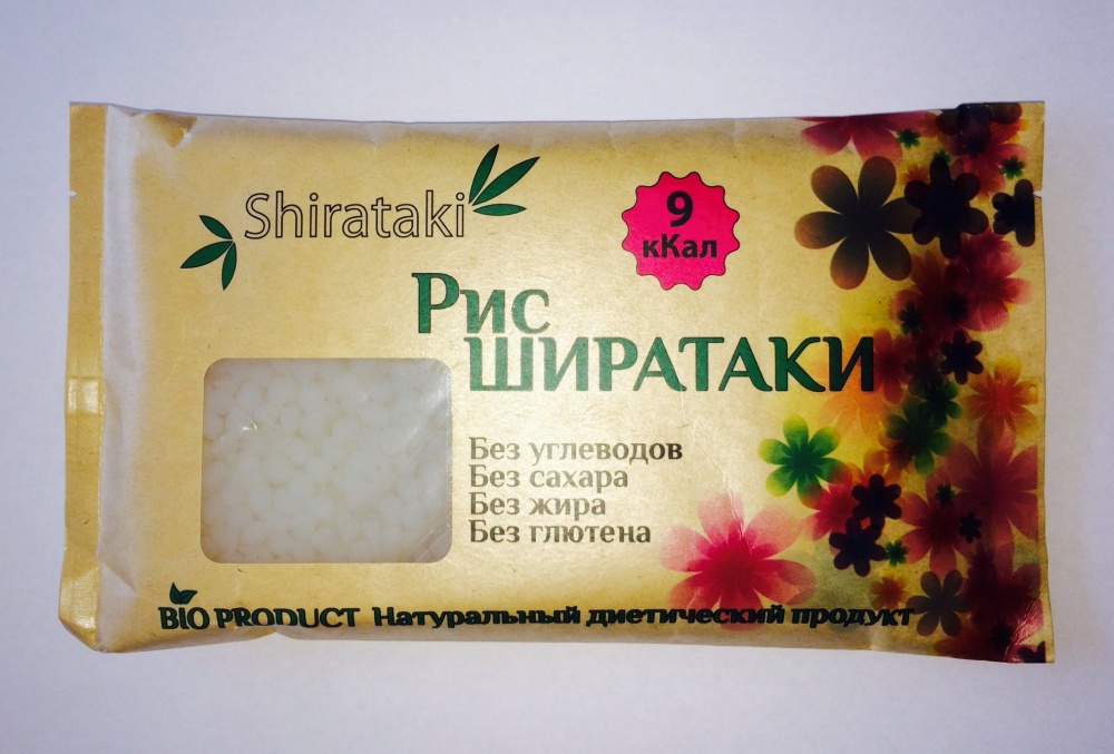 Рис ширатаки получил свое название, благодаря внешнему сходству с обычным рисом. При этом состав риса Ширатаки идентичен составу классического продукта. Некоторые производители называют рисом порезанные остатки от производства, что не верно по определению. Настоящий рис ширатаки должен быть круглым, слегка напоминающим икринки.