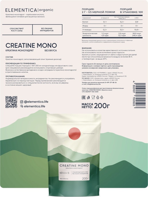 Интернет-магазин Body-Pit.Life предлагает купить Креатин ELEMENTICA Creatine Mono 200 гр в Барнауле.
