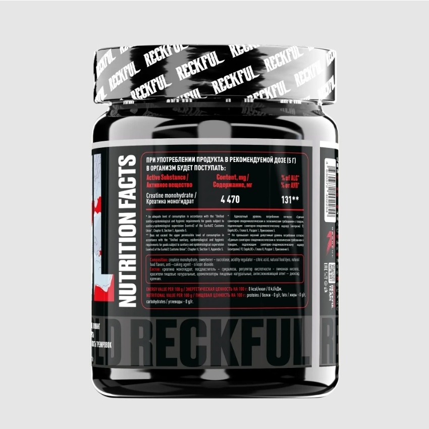 Reckful Creatine Monohydrate – это улучшенная формула креатина для тех, кто стремится к улучшению силовых показателей, выносливости и быстрому восстановлению. Креатин моногидрат является одной из самых эффективных добавок для увеличения мощности, помогает вам достигать новых высот в тренировках и ускоряет процесс восстановления. С добавлением ярких вкусов процесс приема креатина станет не только полезным, но и приятным.
