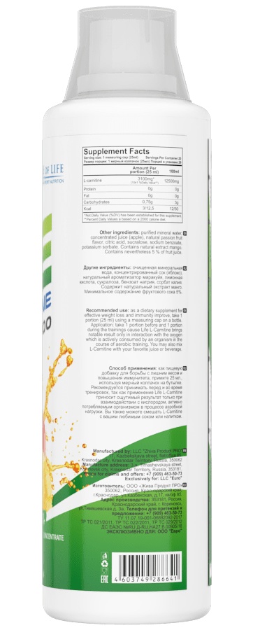 Для достижения результатов по снижению лишнего веса, примите 20 мл., используя мерный колпачок на бутылке. Рекомендуется принимать перед и во время тренировок, так как применение Life L-Carnitine приносит ощутимый результат только при взаимодействии с кислородом, активно потребляемым организмом в процессе аэробной нагрузки. Вы также можете смешать Life L-Carnitine с вашим любимым соком или напитком.