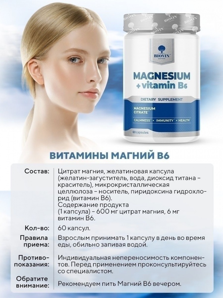Интернет-магазин Body-Pit.Life предлагает купить Витамины Biovin Magnesium + B6 90 капсул в Барнауле.