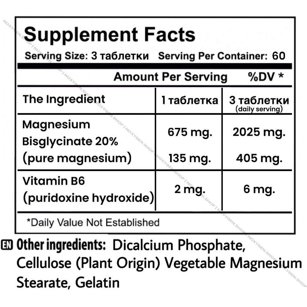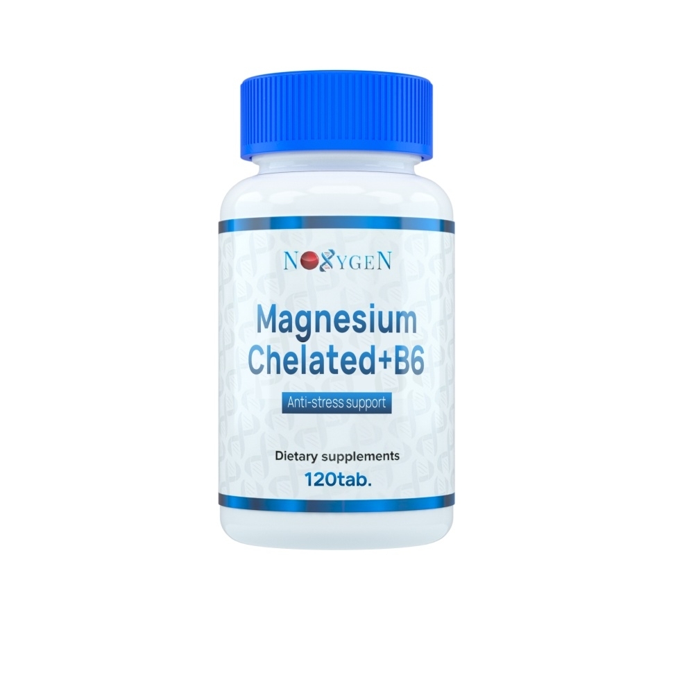Magnesium Chelated+B6 от Noxygen содержит бисглицинатный магний, который имеет более высокую биодоступность и меньше вероятность побочных эффектов.