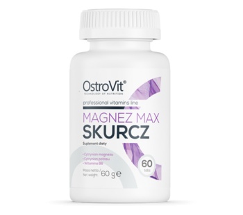 OstroVit Magnez Max Skurcz - уникальный витаминно-минеральный комплекс, состоящий из высокобиодоступных форм соединений магния, калия и витамина B6. Восполнение дефицита минералов особенно важны для людей, занимающихся спортом, ведущих активный образ жизни, а также для людей, которые ценят благополучие и заботятся о гомеостазе своего тела.