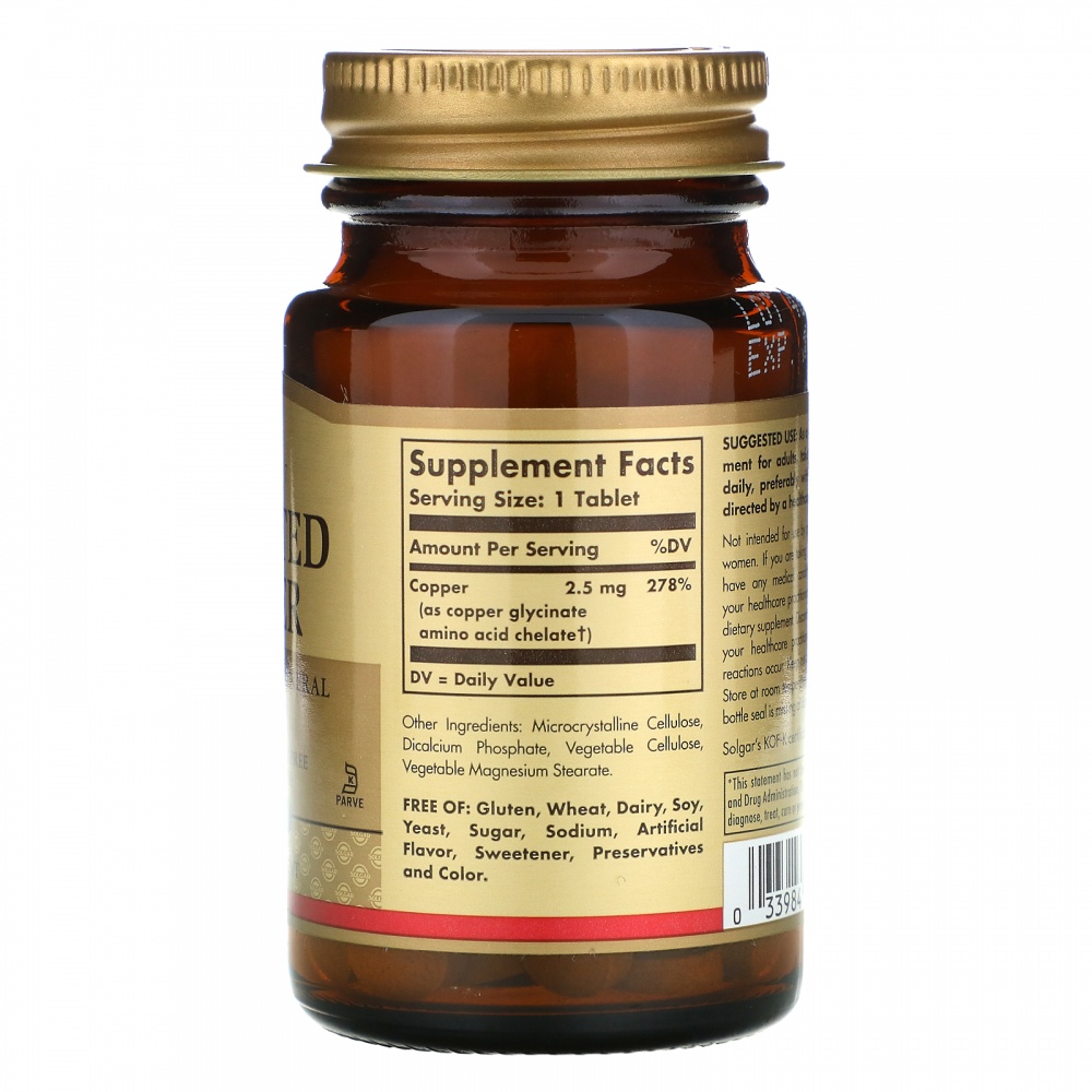 Витамины Solgar Copper Chelated 100 таблеток
