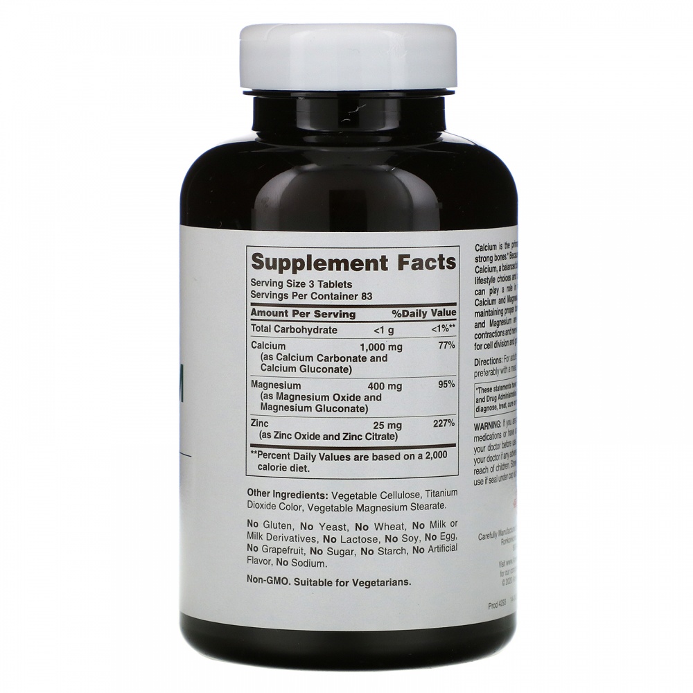 Кальций (в форме карбоната кальция и глюконата кальция): 1000 мг (1 г)